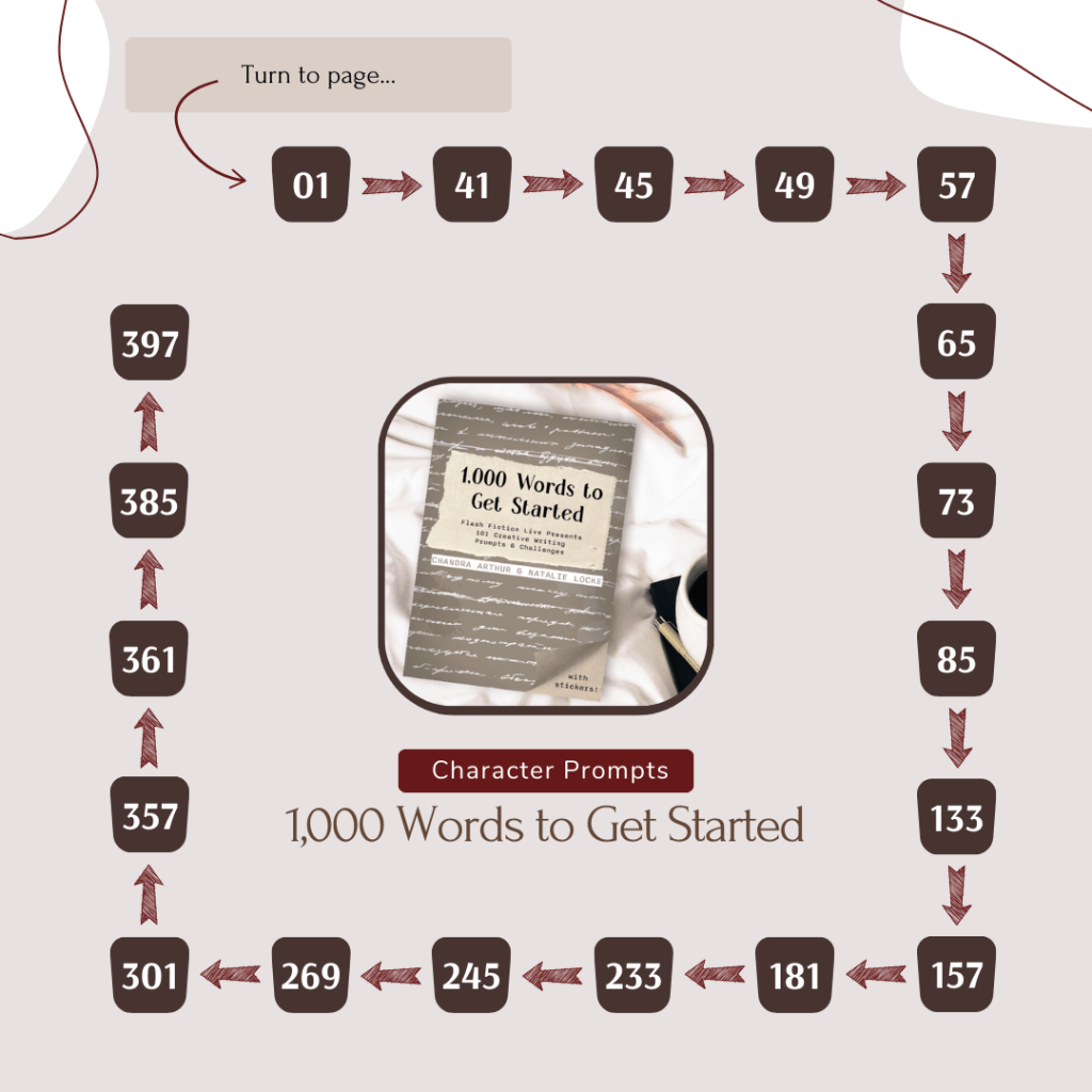 These prompts are in 1,000 Words to Get Started, if you don’t have a copy, you can order it here, or ask your local indie bookstore.