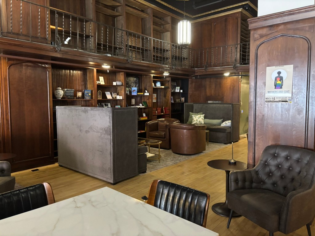 Table and bar seating is available so you can work and there’s lots of cozy seating for reading, talking and hanging out. While I was in, I got to know the snacks on the menu plus, coffee, tea, and cocktails. Try the hot chocolate and be sure to get the french vanilla marshmallows, I highly recommend.