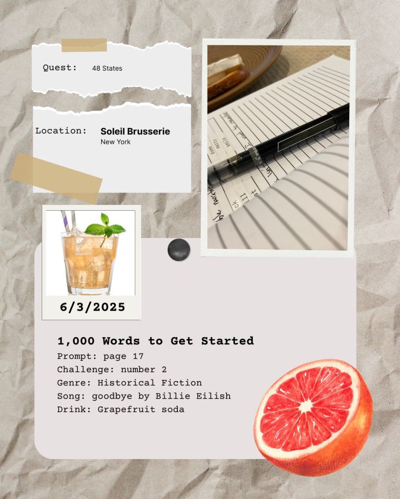 Pick your words, challenge, and prep the page before you go. It will make it a lot easier to get in and get started without any fuss especially if you’re going to be writing in a busy location. Also if the seating is tight, it will make the process much smoother.
